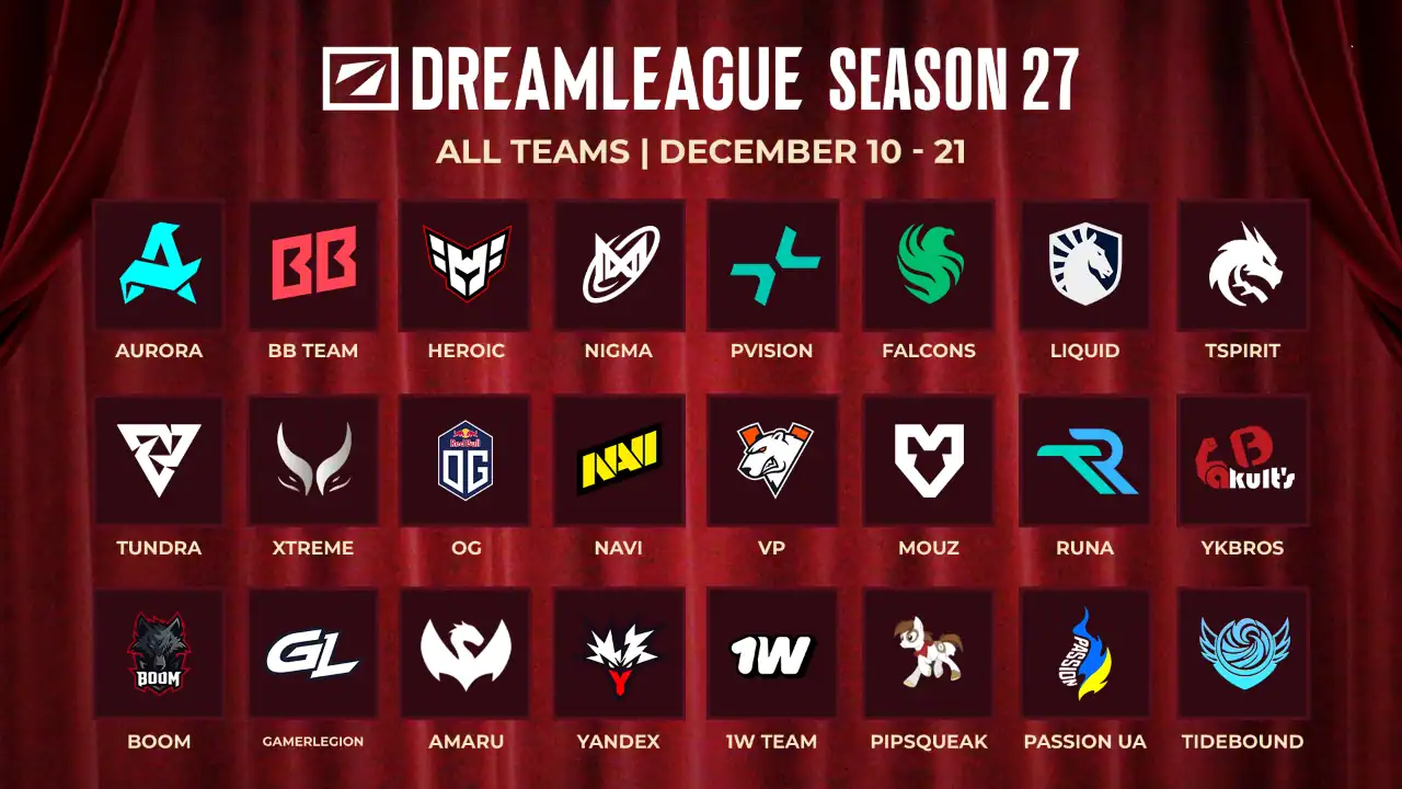 DreamLeague Season 27 10 dekabrdan 21 dekabra qədər onlayn formatda keçirilir. Turnirin ümumi mükafat fondu $1 milyondur.