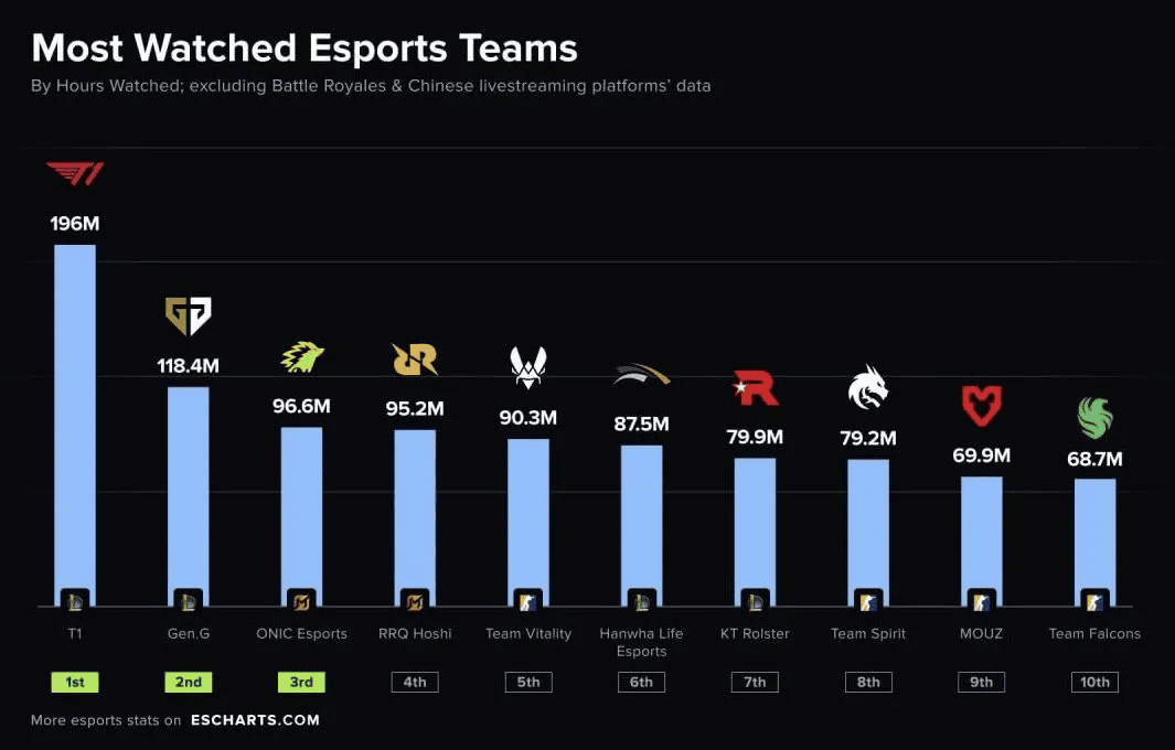 Hesabat həm sosial şəbəkələrdə, həm də rəsmi internet saytında təqdim olunub. Reytinqdə birinci yeri T1 klubunun League of Legends heyəti tutub. İkinci pillədə isə Gen.G Esports qərarlaşıb. Ən yaxşı dördlüyü Mobile Legends: Bang Bang üzrə mübarizə aparan ONIC Esports və RRQ Hoshi komandaları tamamlayıb.